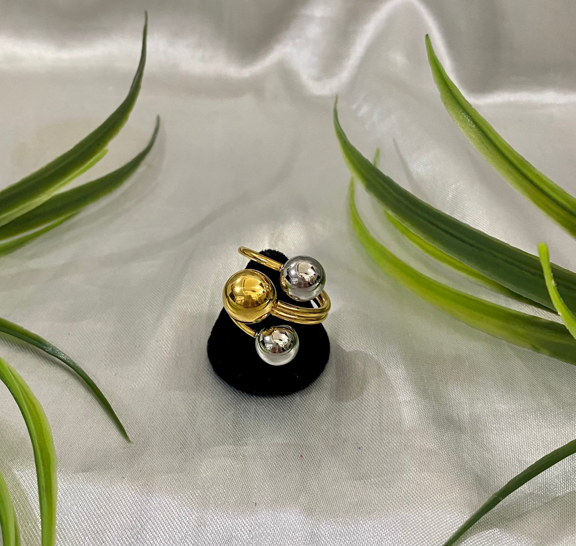 Anillo 3 esferas bicolor