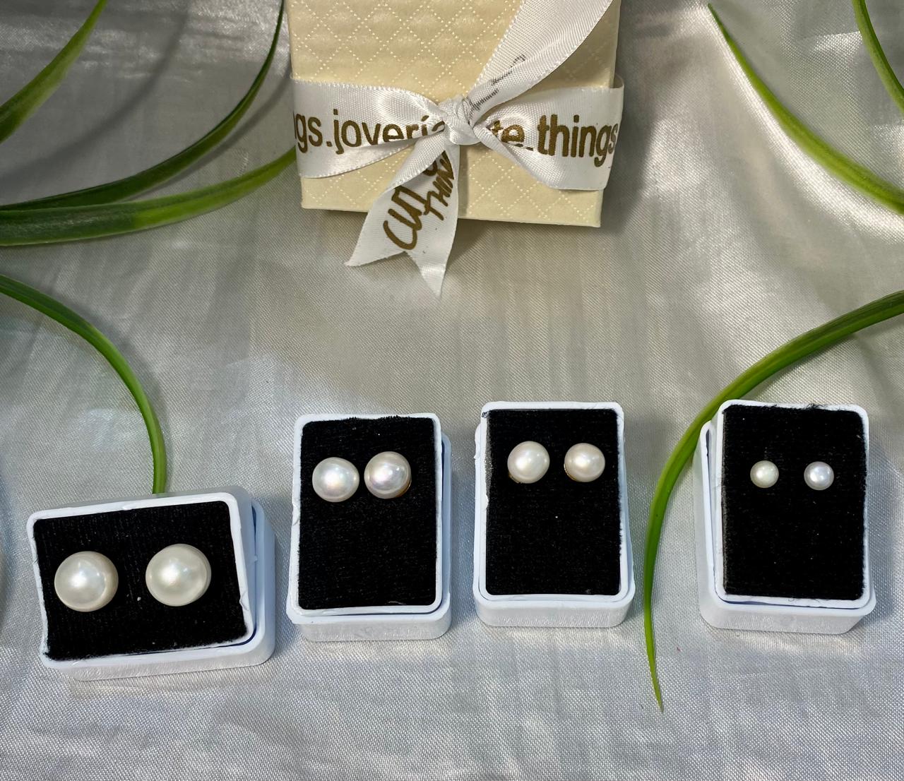 Arete de poste con Perla de Río, 4 tamaños, Chapa de oro