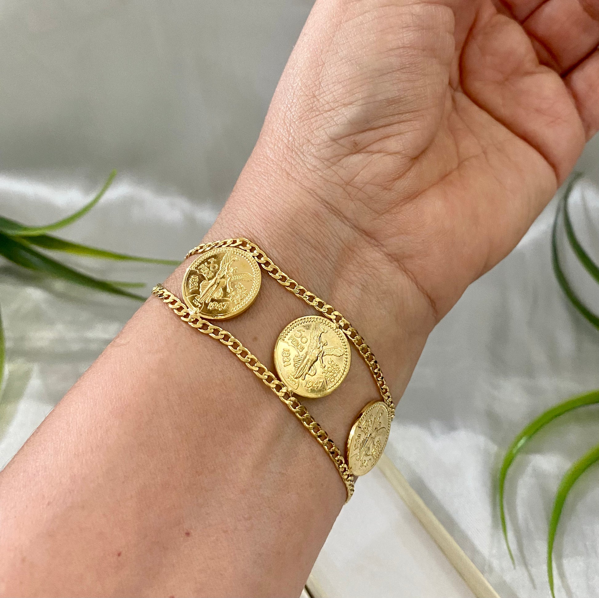 Pulso 3 monedas tipo centenario, Cadena barbada