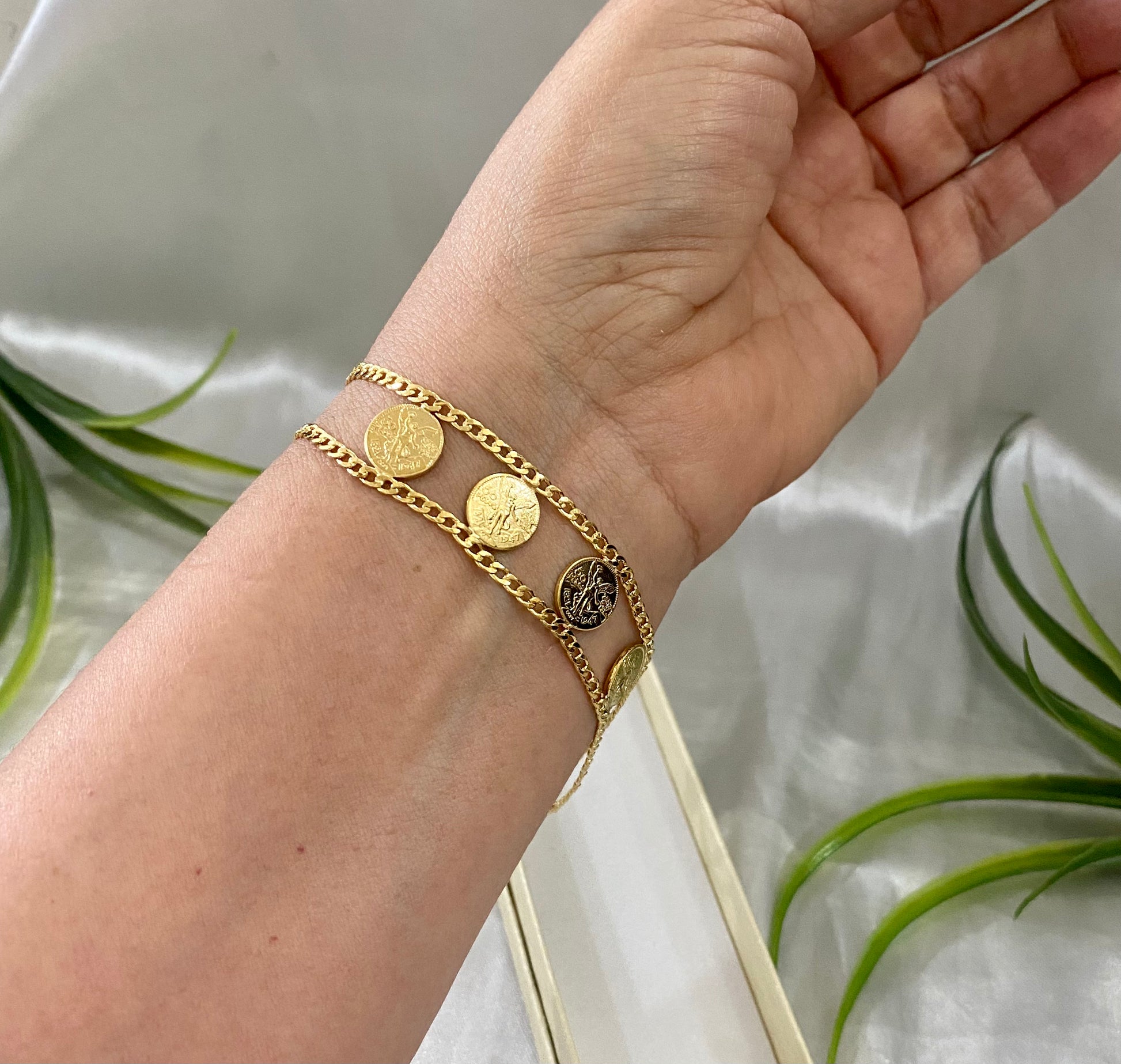 Pulso 4 monedas mini tipo centenario Cadena barbada